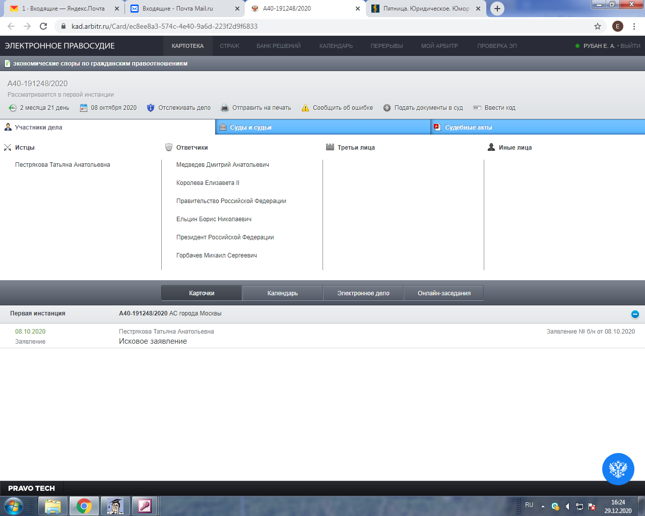 душевнобольной не выглядит. Она правильно оформила документы на подачу иска.