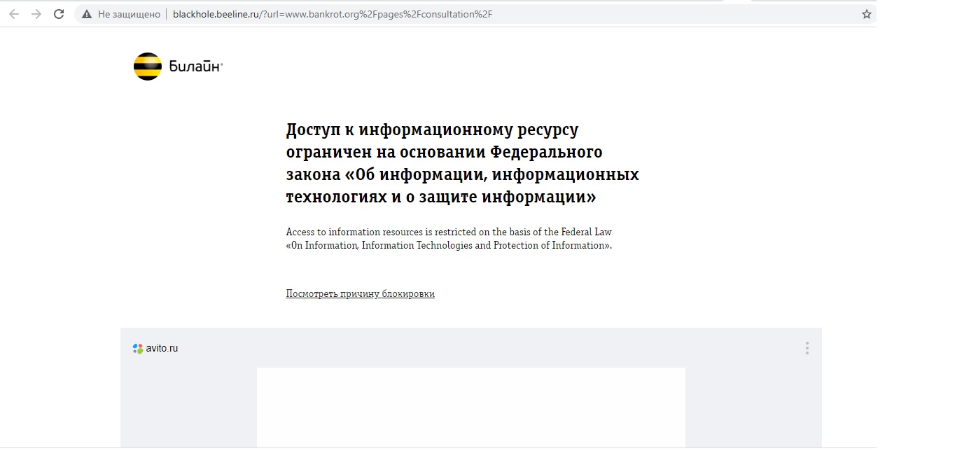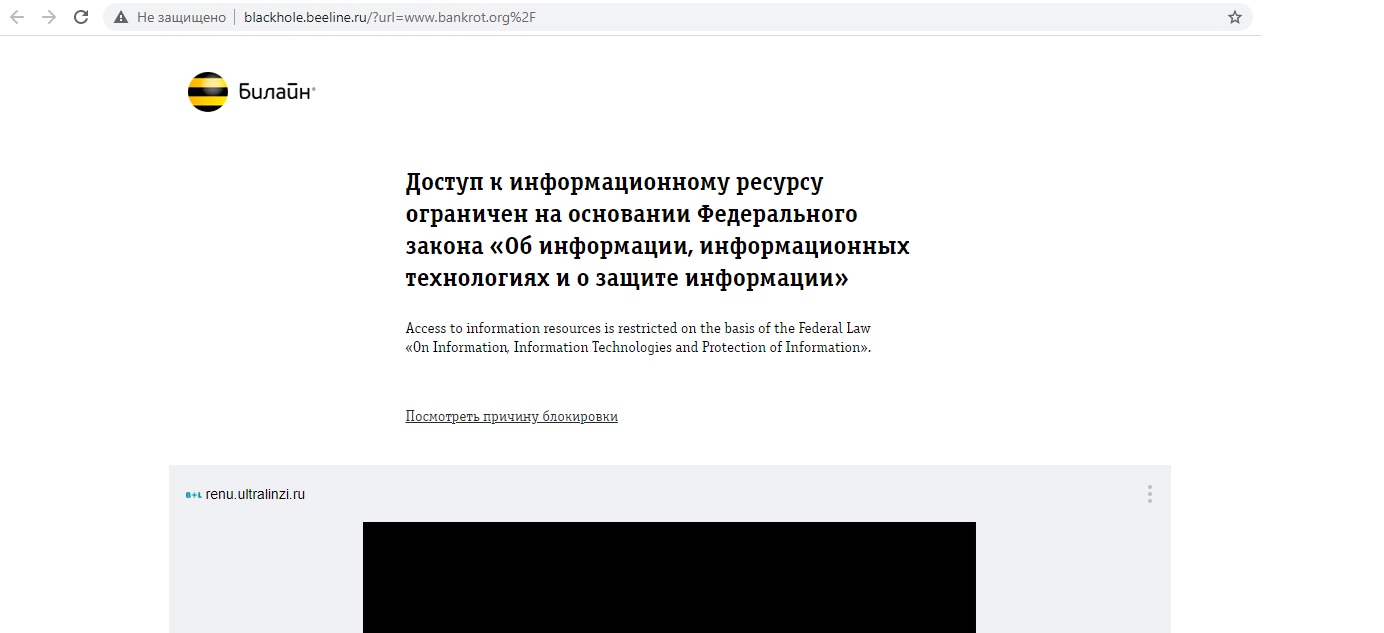 Техподдержка Билайна сообщила, что ресурс не заблокирован, но числится в списке подозрительных Роскомнадзора.