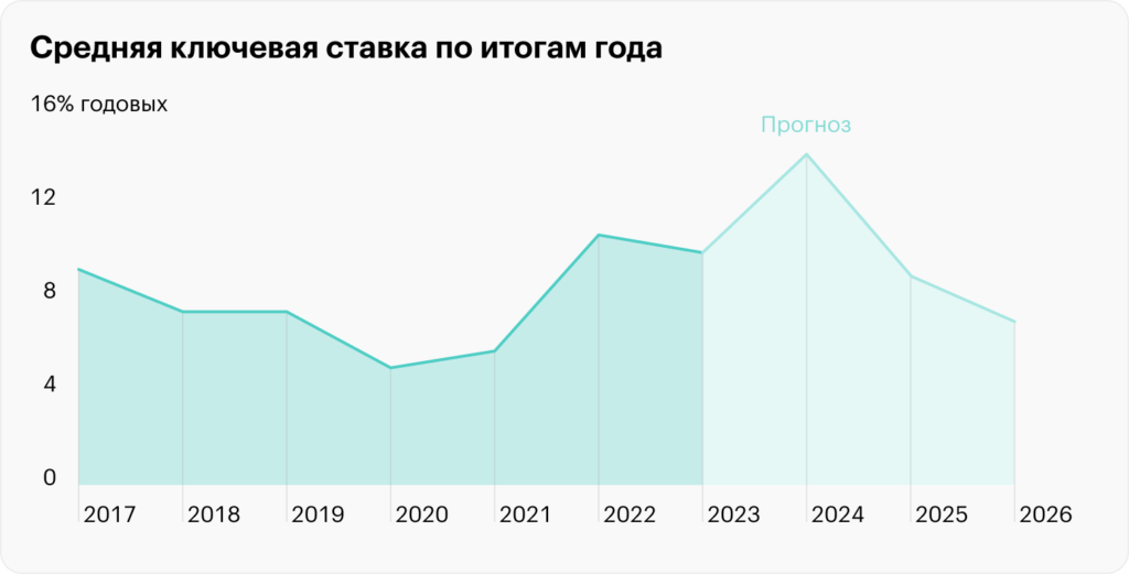 Скорее всего, цикл снижения начнется во втором полугодии — такой сценарий называют и большинство аналитиков, и руководство ЦБ. Но могут начать и раньше — если инфляция станет замедляться быстрее прогнозов. И наоборот, сохранение высокой инфляции может заставить ЦБ держать высокую ставку дольше, чем ждут участники рынка, или даже вновь перейти к повышению.