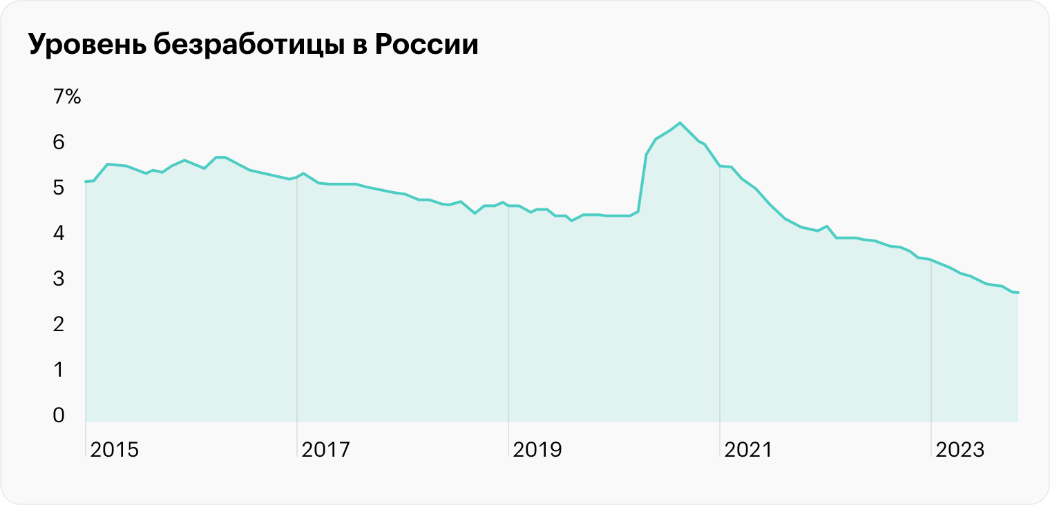 Дефицит кадров в России подтверждает официальная статистика безработицы. В октябре — ноябре 2023 года ее уровень достиг исторического минимума в 2,9%. Рекордно низким он остается и сейчас и вряд ли изменится в будущем.