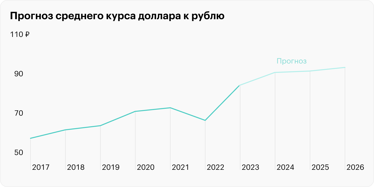 Кстати, текущий курс рубля ниже консолидированного прогноза аналитиков, которые ожидают, что в 2024 году доллар будет стоить в среднем 92 ₽.